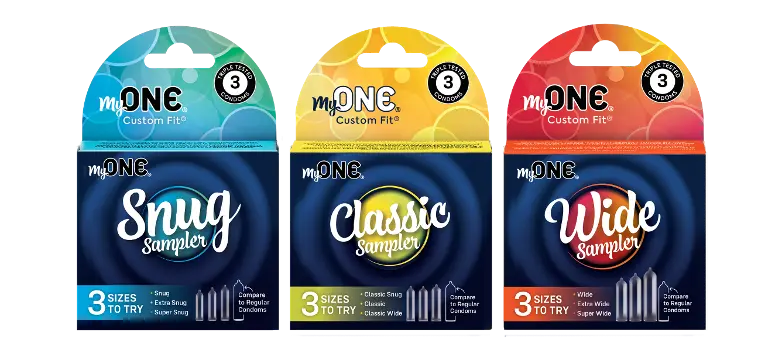 Want to provide your community with a way to sample a few different sizes within the MyONE® Custom Fit® line? Check out our Snug, Classic and Wide samplers. Each one includes 3 different condom sizes inside, plus the FitKit® measuring tool so they can adjust their fit at home as needed.