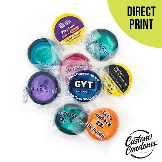 Present your organization or event in style with this very popular give-a-way! Your art is printed directly on a clear wrapper, high-quality condom.